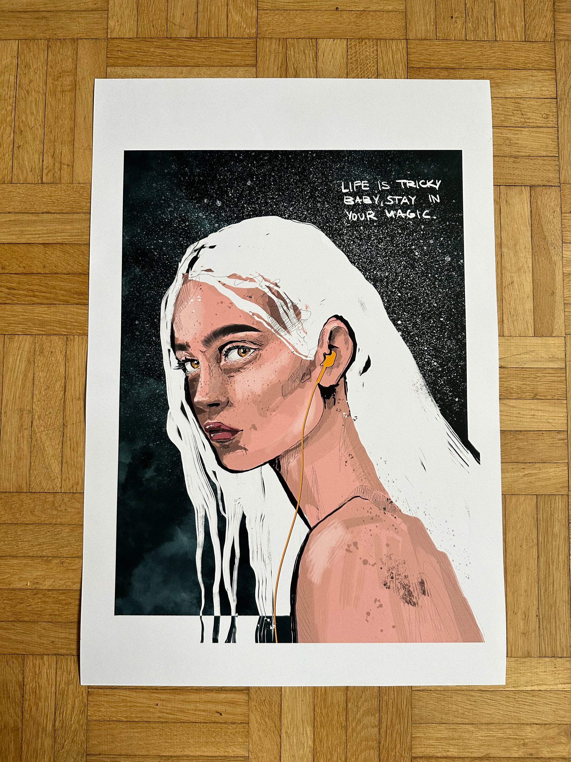 Dieser 33x49 cm große Print ist im Sale, da er nicht mehr zur aktuellen Kollektion gehört. Es können kleine Mängel wie Eselsohren oder winzige Flecken auftreten – müssen aber nicht. Ein Unikat aus der Vergangenheit zum Sonderpreis.